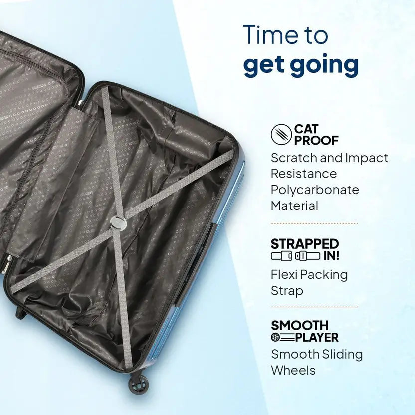 Features Smooth manoeuvrability, sturdy polycarbonate shell, spacious interior suitable for long trips