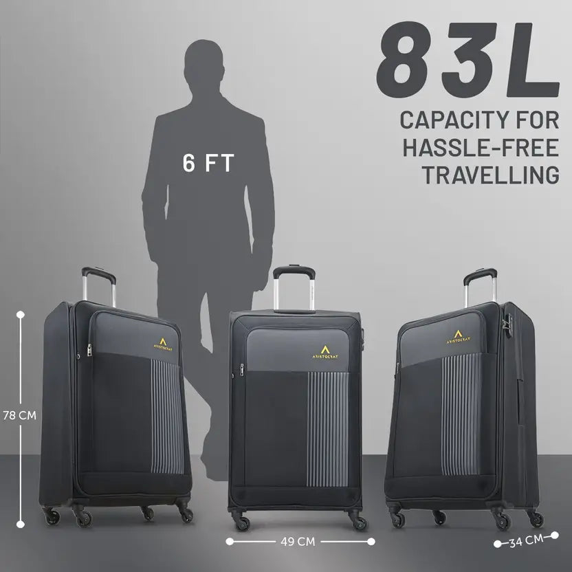Aristocrat Large Check-In Suitcase (79 Cm) 4 Wheels - Airplus 79 - Softbody Trolley Bag - Black