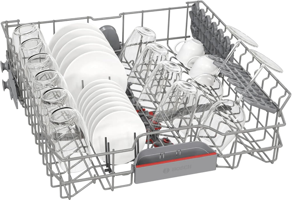 The Bosch Series 6 free-standing dishwasher is designed for efficient and convenient cleaning of large loads. With a 15 place setting capacity, it is suitable for big households and frequent usage. The dishwasher features Wi-Fi connectivity for smart control and monitoring, along with a durable brushed steel body finished with an anti-fingerprint coating to maintain a clean look. Its 60 cm design fits standard kitchen spaces, offering reliable performance for everyday dishwashing needs.
