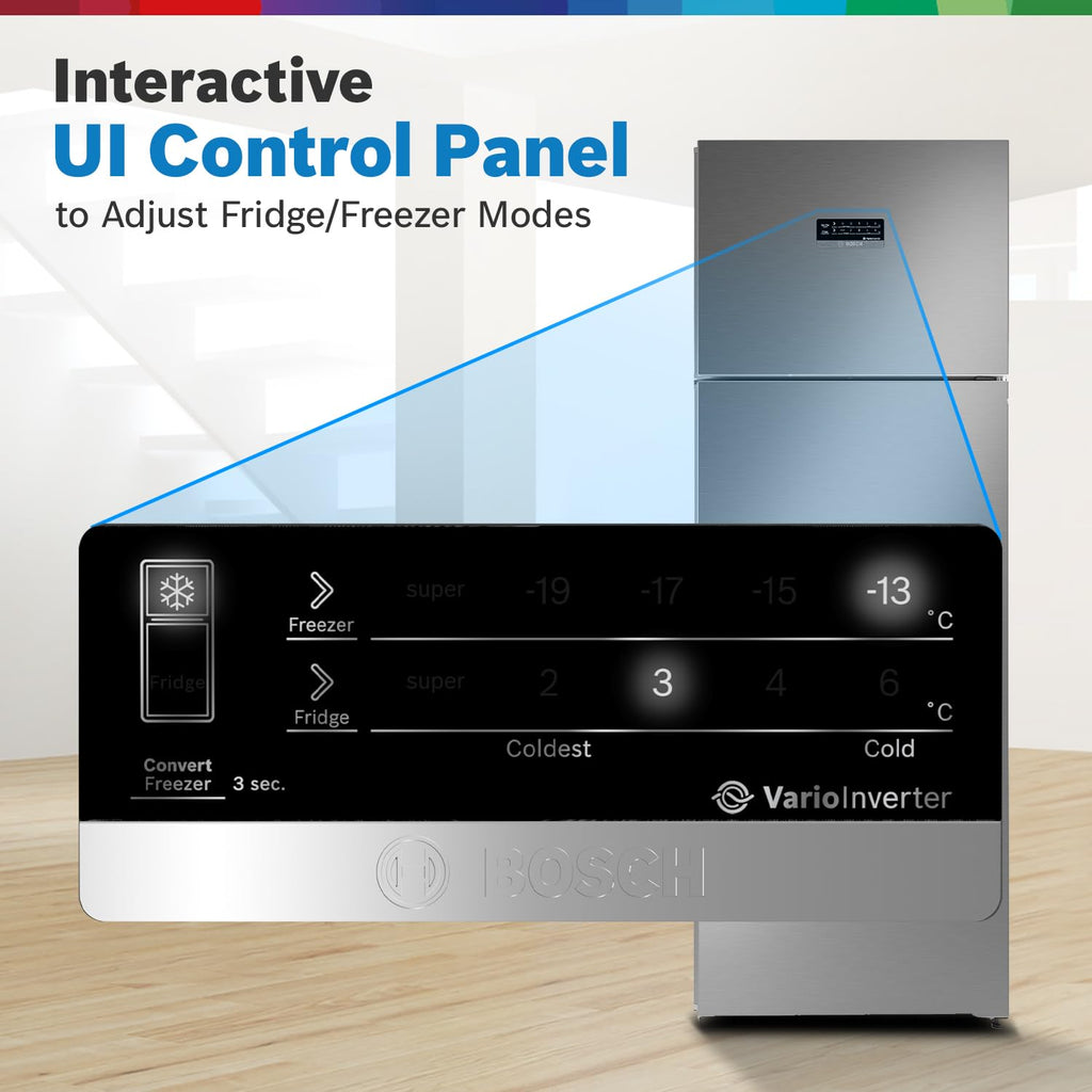 BOSCH Series 4 368 Litres 3 Star Frost Free Double Door Refrigerator (CTC39K03NI, Smoky Steel)