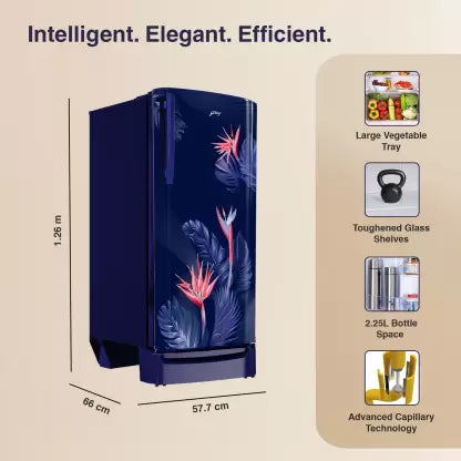 Godrej 183 L 3 Star | Toughened Glass Shelves | 24 Day Farm Freshness | Jumbo Vegetable Tray | Direct Cool Single Door Refrigerator(RD R190C THF FR BL, Floral Blue)