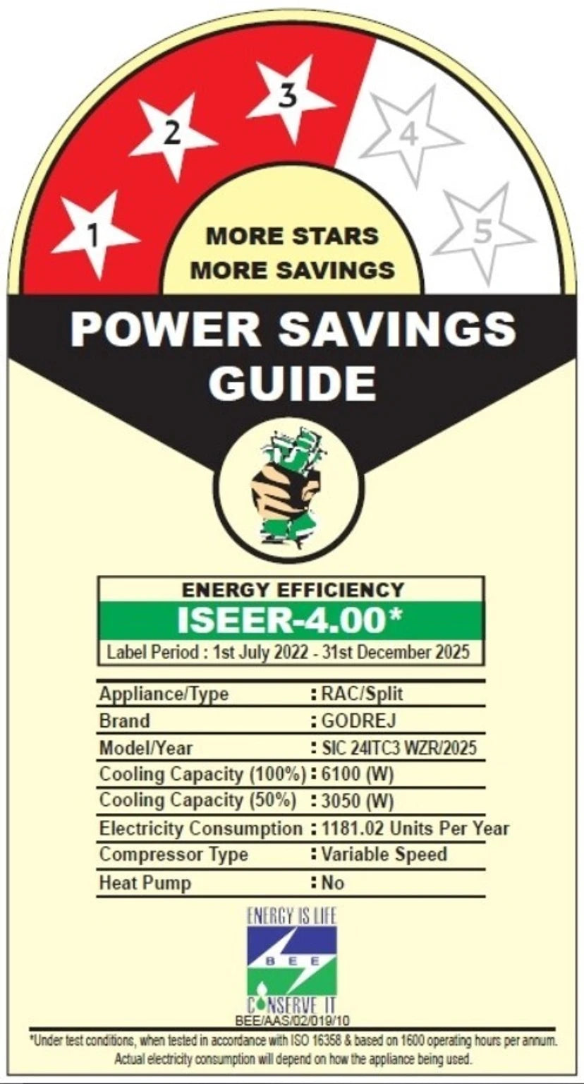 The Godrej SIC 24ITC3 WZR is a 2 ton inverter split air conditioner designed with 5-in-1 convertible cooling to adjust cooling capacity according to room conditions. It features I-Sense technology that detects temperature around the remote for more precise comfort. The air conditioner uses a copper condenser coil for efficient heat transfer and durability. It also includes functions such as auto clean, dehumidification, air swing, and sleep mode for improved cooling performance and convenience. Designed for large rooms, the unit can operate effectively even in high ambient temperatures.