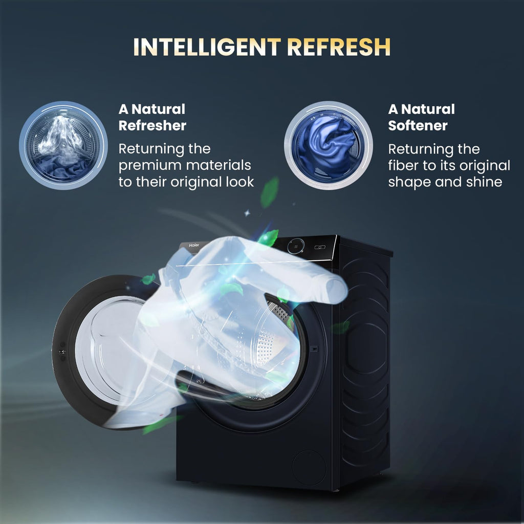 Haier 11 Kg (Wash) / 7 Kg (Dry), 5 Star, Powered by AI-DBT, Direct Drive Technology, Wifi, PuriSteam, I-Refresh, Front Load Fully Automatic Washer Dryer, (EFLD110-DM14IEICBKU1, In-built Heater,Black)