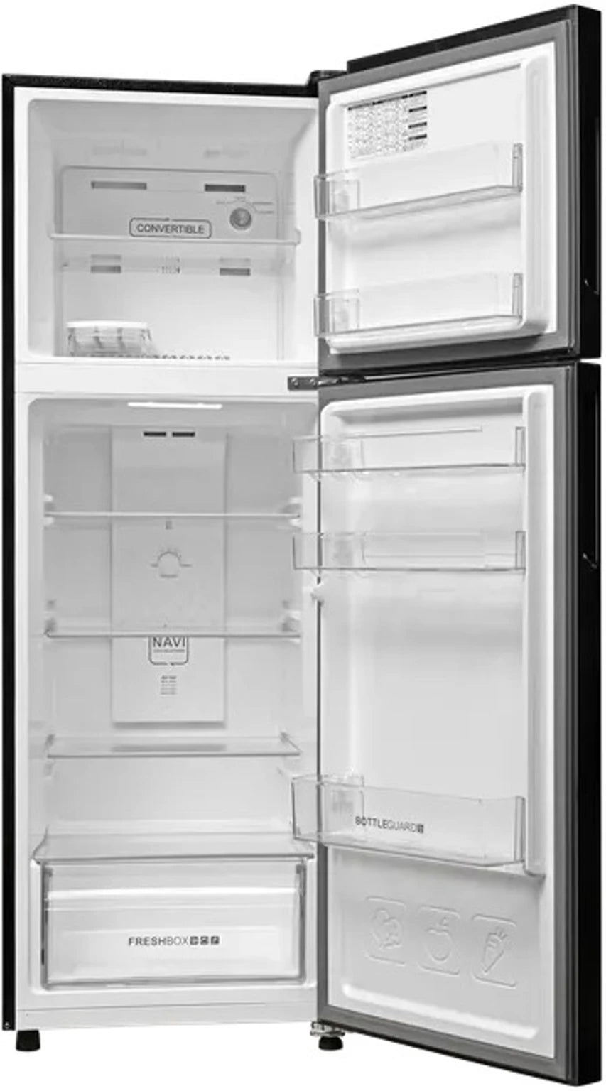 The Haier 240 L 2 Star Frost Free Double Door Top Mounted Refrigerator (Model: HRF-2902BGB-P, GE Black) is designed for efficient cooling and convenient everyday storage. It features frost free technology that prevents ice build-up and eliminates the need for manual defrosting. The refrigerator comes with 5-in-1 convertible modes that allow flexible cooling adjustments based on storage needs. It also includes Turbo Icing technology for faster ice making, twin energy saving modes to optimize energy usage, toughened glass shelves for durable storage, a vegetable drawer for organized freshness, and stabilizer-free operation that allows the appliance to function safely during voltage fluctuations.