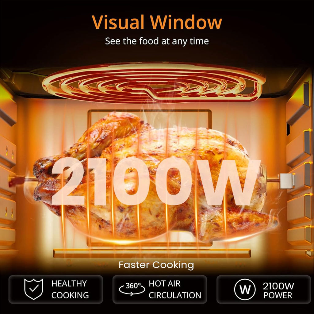 INALSA Air Fryer Oven 2100 W|18 L Capacity|8 Preset Functions with Roast,Reheat,Dehydrate,Bake|LED Touch Display|Rotisserie & Convection, Aero Crisp Pro18