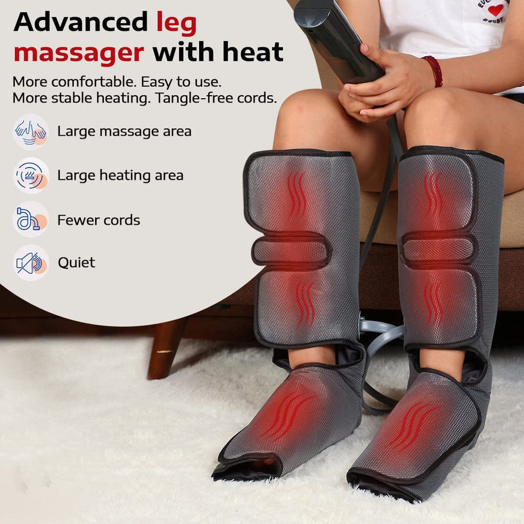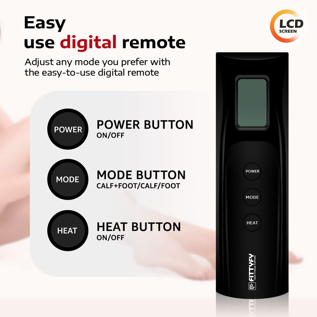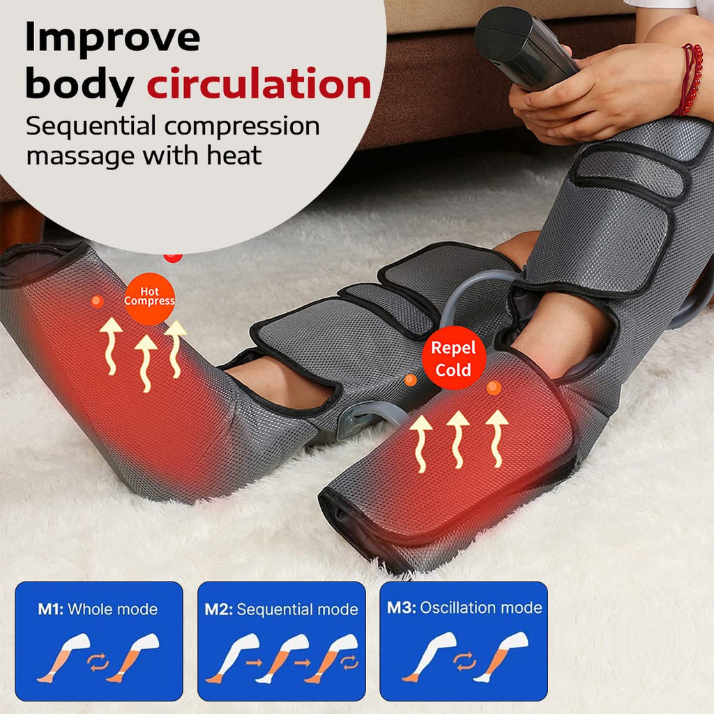 INALSA FFCM‑02 is an electric air compression leg massager with integrated heat, designed to soothe leg and calf fatigue and improve circulation. Featuring three adjustable modes and multiple intensity levels, it includes a handheld controller, 20‑minute auto‑off timer, and a portable design—perfect for post-workout relief or at-home therapy.