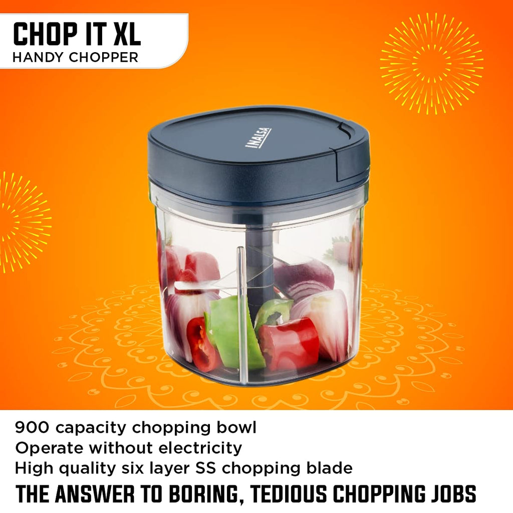 Mini Chopper Features 900 ml capacity, six-layer stainless steel chopping blade