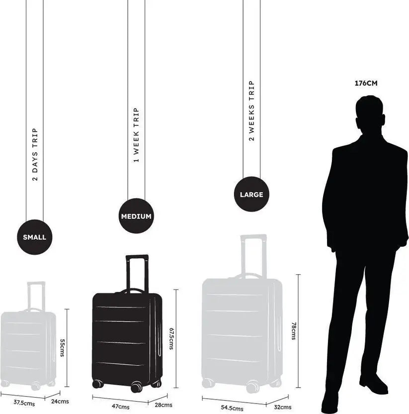Features Lightweight hard shell, modern geometric design, smooth 4-wheel mobility, compact yet spacious interior suitable for short trips and travel