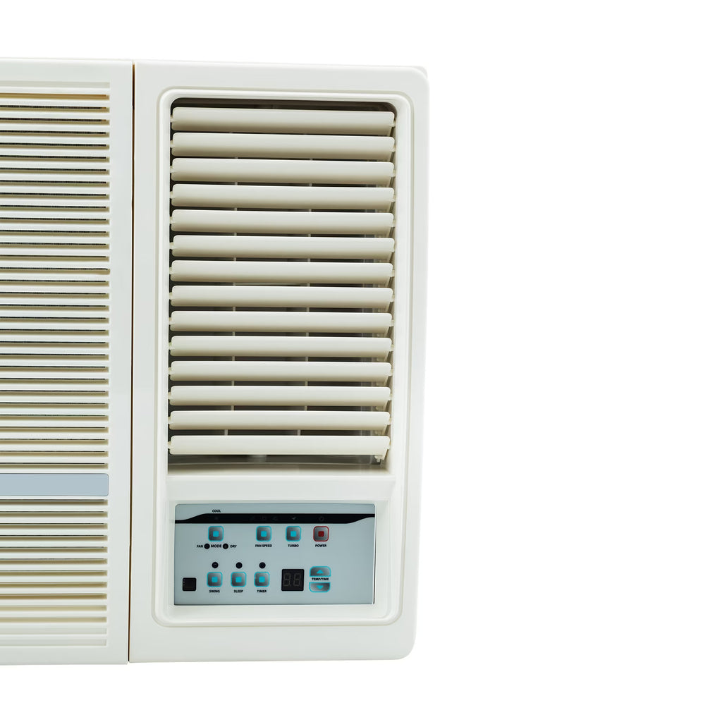 The Kelvinator KAW-F12BPSC is a powerful 1 Ton 2 Star Fixed Speed Window AC designed for efficient cooling in rooms up to 120 sq ft. This 2023 model features advanced Blue Fin Coating technology that provides superior corrosion resistance and enhanced cooling performance. Equipped with 100% copper condenser and evaporator coils for better heat transfer and durability. The AC comes with 5-in-1 expandable functionality, PM 2.5 filter for cleaner air, and SmartFiltAir technology. It includes multiple operating modes like Cool, Dry, Fan, Auto, Sleep, Turbo, and Eco mode for optimal comfort and energy efficiency. The unit features auto restart protection, independent dehumidification, and turbo mode for rapid cooling.