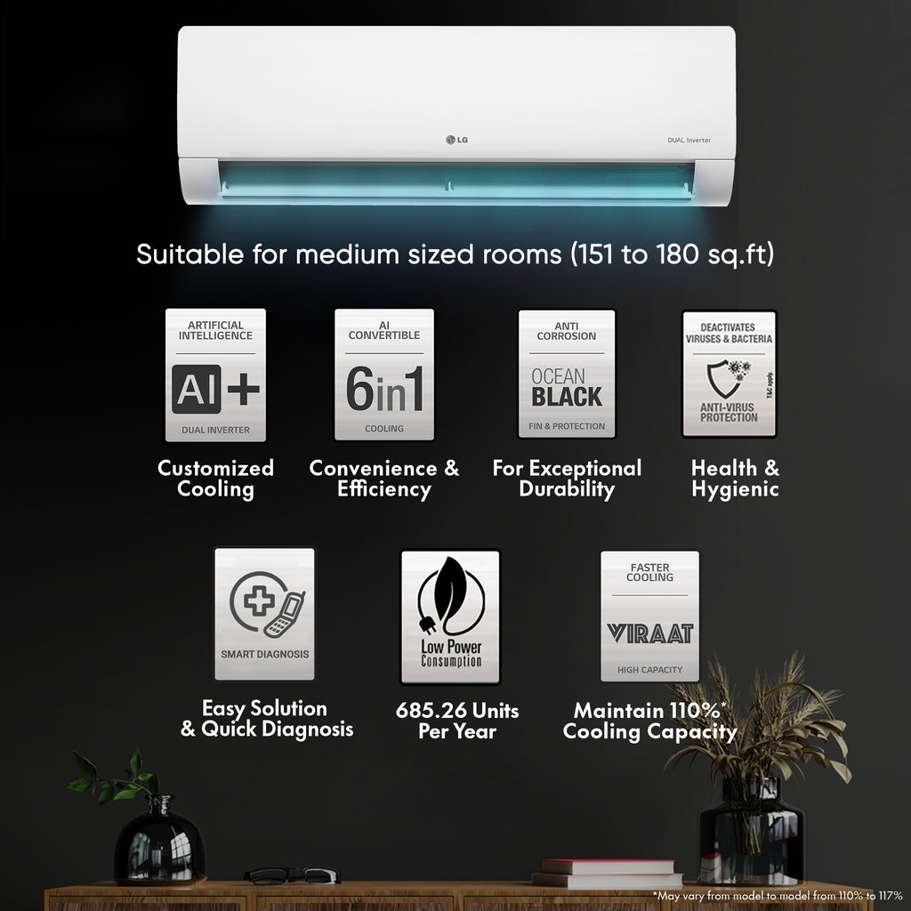 LG 1.5 Ton 5 Star Inverter Split AC, RS-Q19KWZE (Wifi, 100 Percent copper, AI Plus Dual Inverter Compressor, 4 Way Swing, Anti Corrosive Ocean Black Protection, 2023 launch)