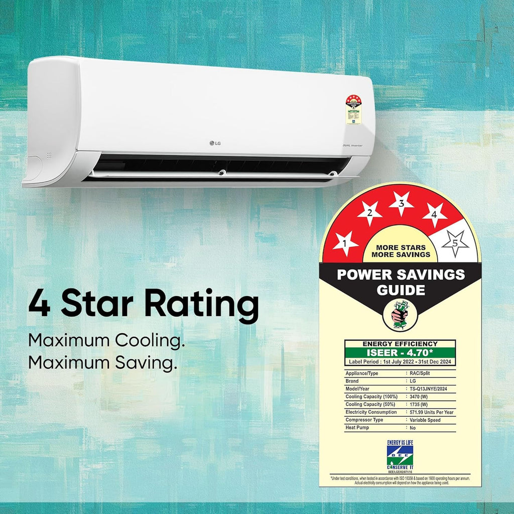 LG 1 Ton 4 Star DUAL Inverter Split AC TS-Q13JNYE, White)