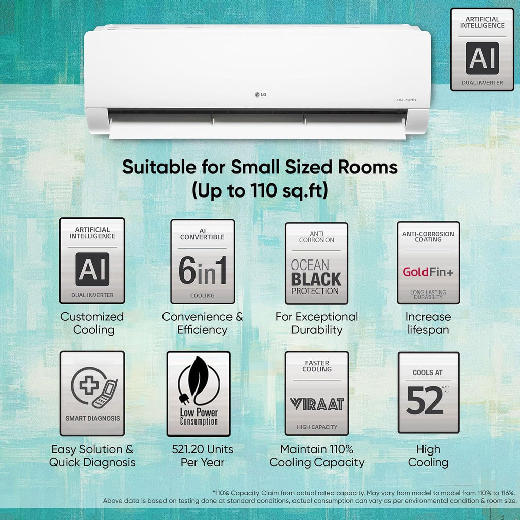 Experience personalized comfort and superior cooling with the LG 1 Ton 4 Star AI Convertible 6-in-1 Cooling Split Inverter Air Conditioner. This 2024 model is designed to provide efficient cooling while adapting to your needs. Its AI-powered technology and versatile features ensure a comfortable and healthy environment in your home.
