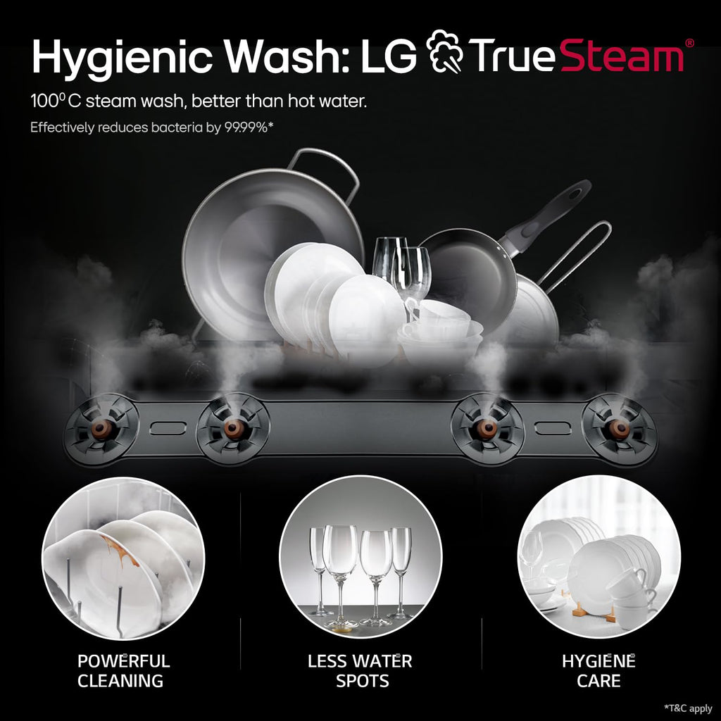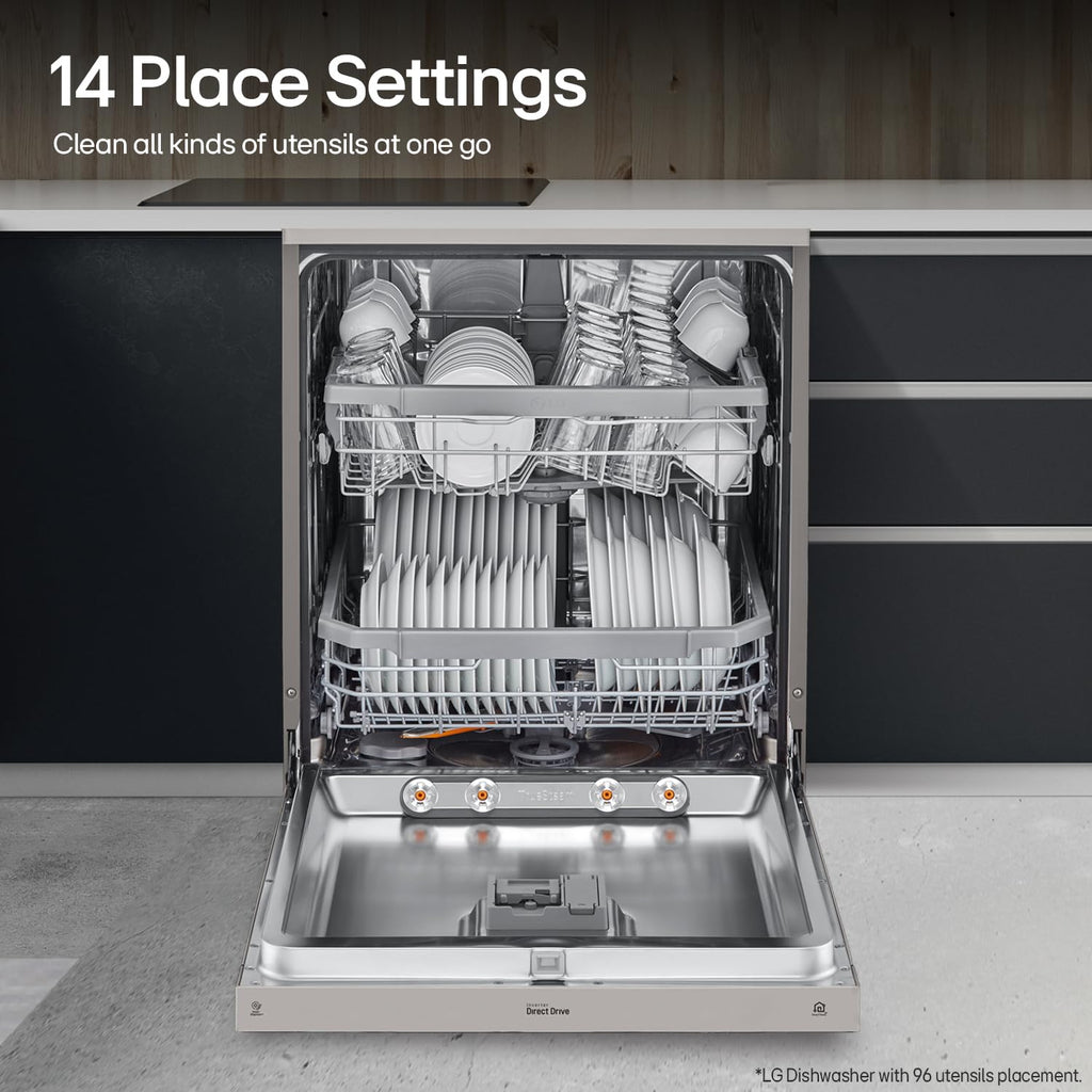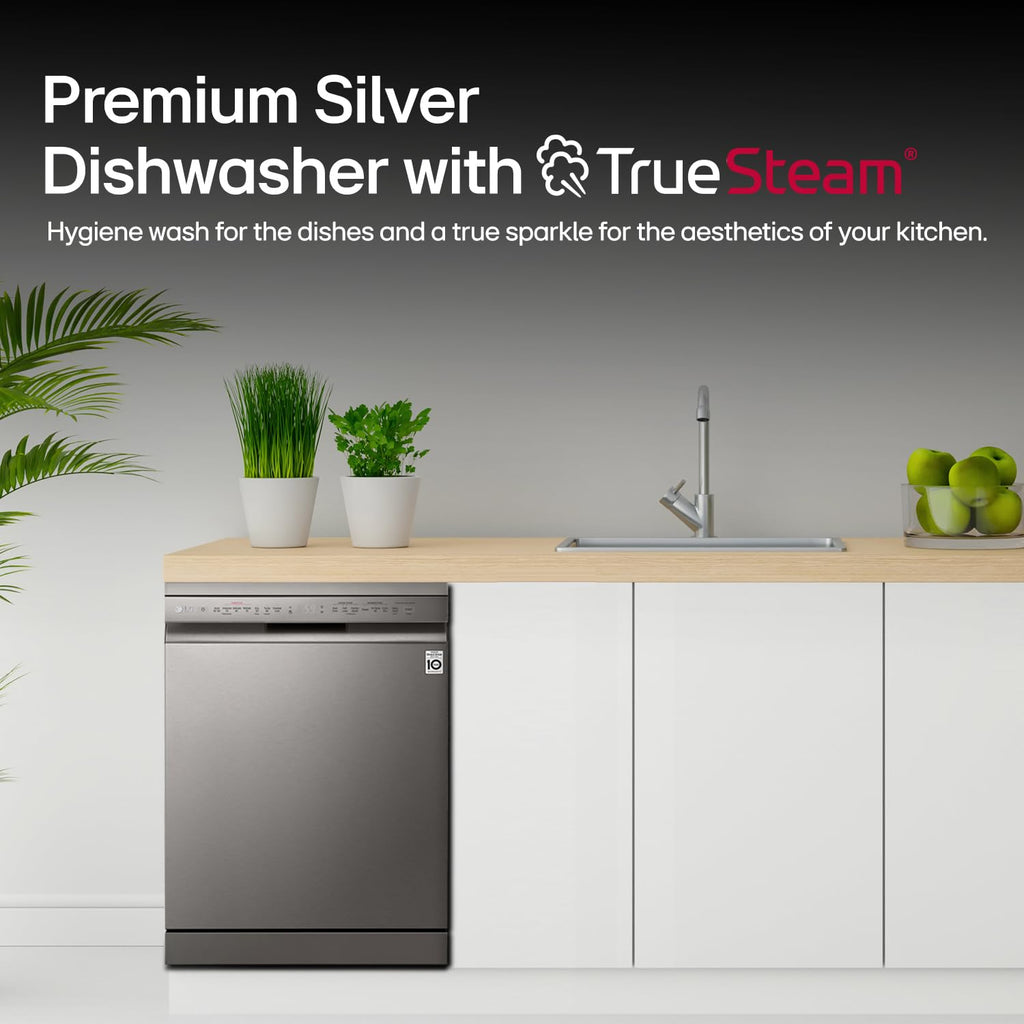LG 14 Place Setting Free Standing Dish Washer with TrueSteam, QuadWash, EasyRack Plus, Wi-Fi Enabled (DFB424FP, Silver, Inverter Direct Drive Motor)