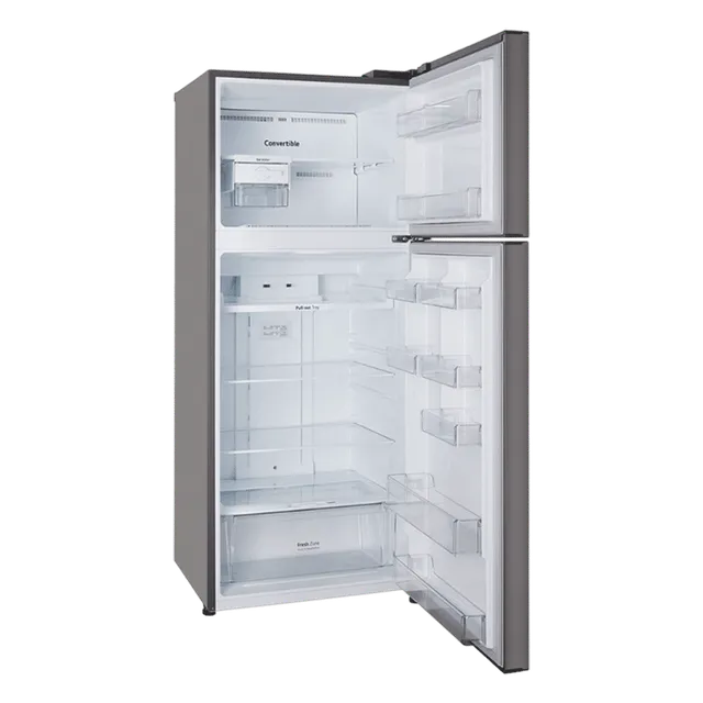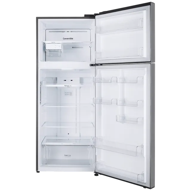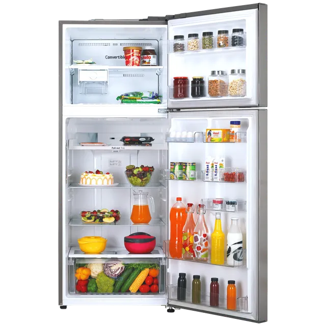 LG 446 Litres Frost Free Double Door Convertible Refrigerator is designed for large households that need spacious, flexible storage and powerful cooling. Equipped with convertible technology, it allows you to adjust fridge and freezer space as per your usage needs. Door Cooling+ technology ensures faster and uniform cooling across shelves, while frost-free operation eliminates ice build-up. The refrigerator combines high-capacity storage with efficient performance and a premium Shiny Steel finish for modern kitchens.