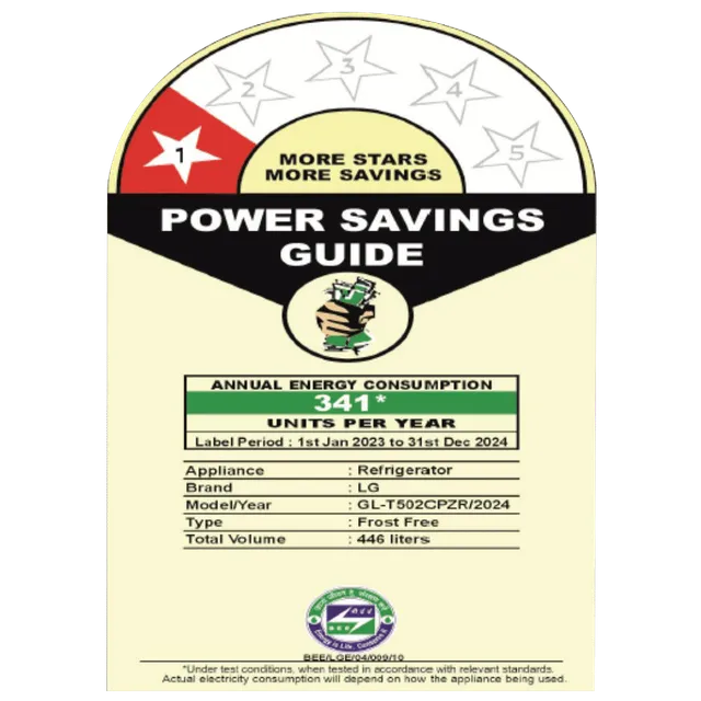 LG 446 Litres 1 Star Frost Free Double Door Convertible Refrigerator (GL-T502CPZR, Shiny Steel)