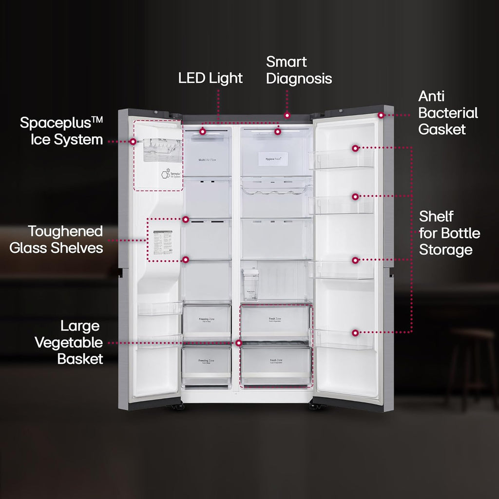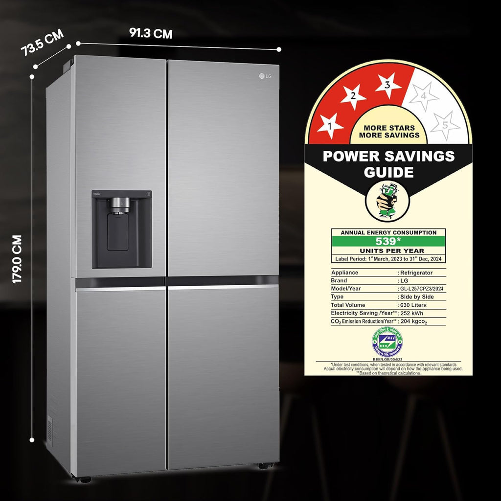LG 630 L 3 Star Frost Free Smart Inverter Wi-Fi Double Door Side by Side Refrigerator (GL-L257CPZ3, Shiny SteelWith Water & Ice Dispenser)
