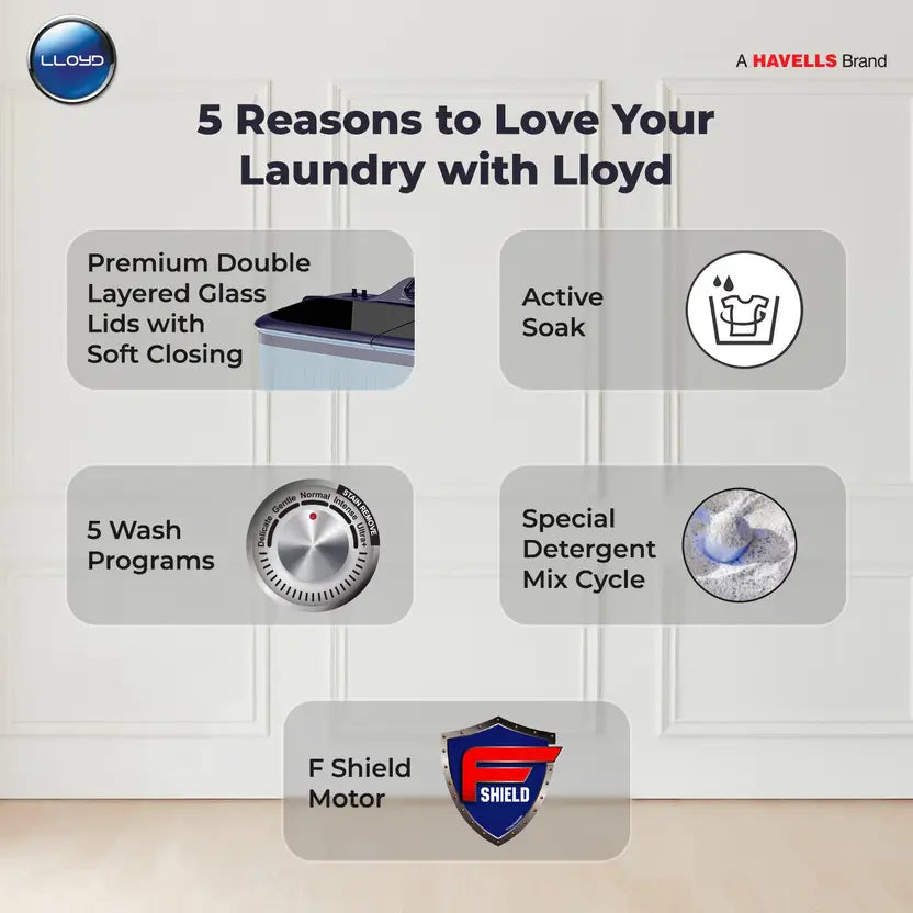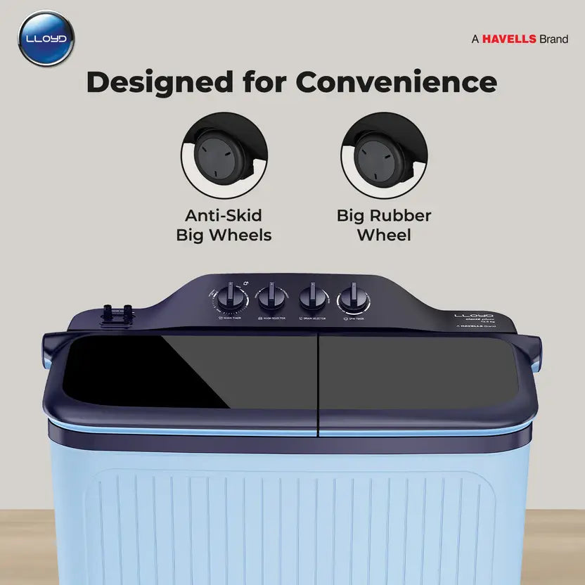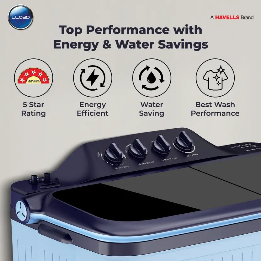 Lloyd 12 kg Semi Automatic Top Load Washing Machine is designed for heavy laundry loads, making it ideal for large families. It features a powerful wash motor for effective cleaning, a separate spin tub for faster drying, and a durable body for long-lasting performance. The semi-automatic design allows better control over the wash process while ensuring low water and energy consumption. Its simple controls and efficient washing action make everyday laundry easy and cost-effective.