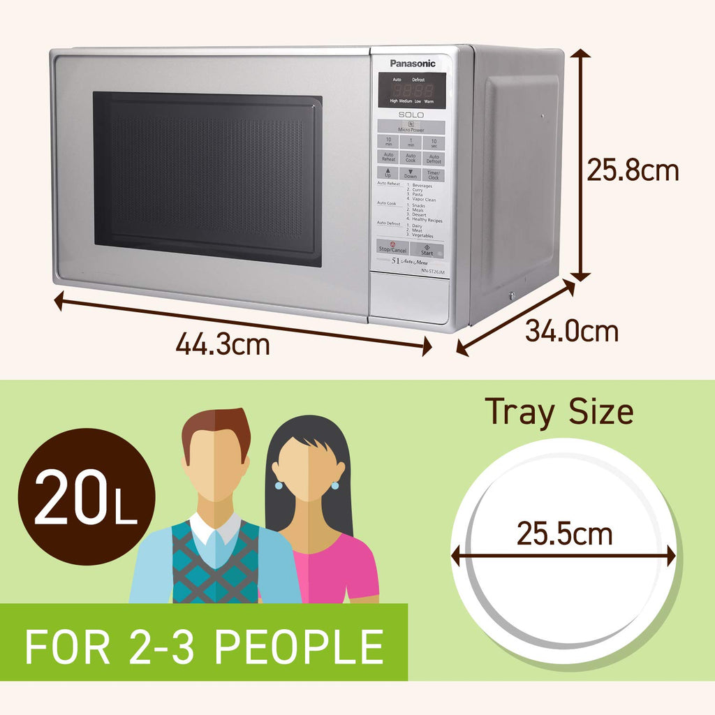 Panasonic 20L Solo Microwave Oven (NN-ST26JMFDG, Silver, 51 Auto Menus)
