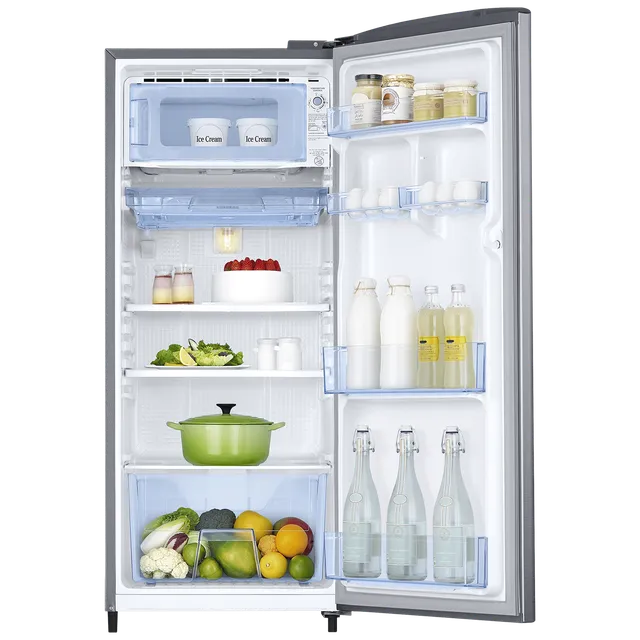 Samsung 183 L Direct Cool Single Door Refrigerator is a compact and efficient cooling solution for small families and individuals. It features direct cool technology for quick and effective cooling, along with an anti-bacterial gasket that helps keep food fresh and hygienic for longer. The refrigerator offers stable cooling performance with low energy consumption and a sleek Elegant Inox finish, making it suitable for everyday household needs with reliable Samsung quality.