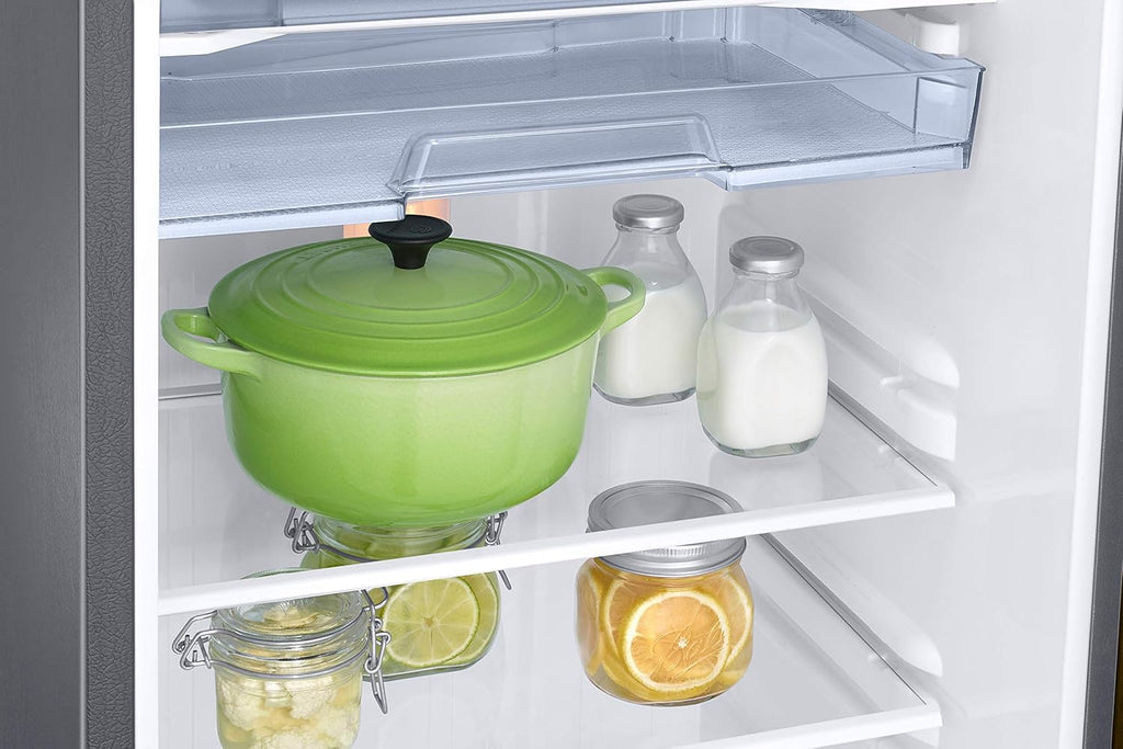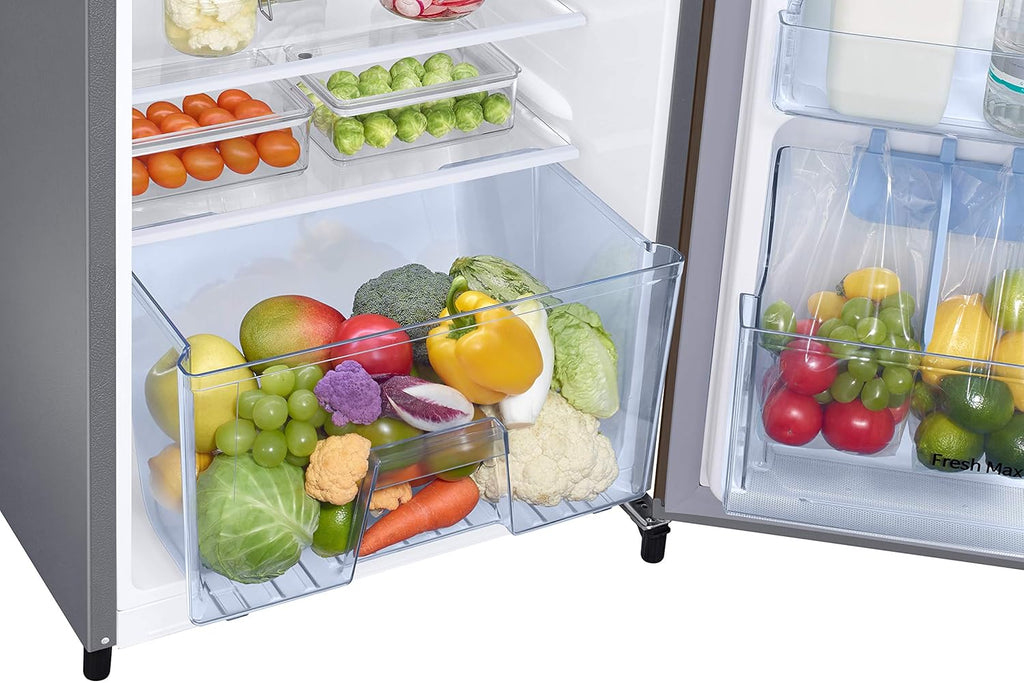 The Samsung 246L 3 Star Inverter Direct-Cool Single Door Refrigerator (RR26C3733DX/HL) offers a spacious 246 litre capacity with energy-efficient 3-star direct-cool cooling, ideal for small to mid-size families. Its Digital Inverter Compressor adjusts cooling performance automatically for quieter, efficient operation with lower power consumption. The fridge includes a premium vegetable box for long-lasting freshness, a “Fresh Max” door bin for extra storage of bottles and beverages, and toughened glass shelves that can support heavy loads. Added conveniences like stabilizer-free operation, anti-bacterial gasket, and a bright interior lamp make it a practical, everyday refrigerator built for durability and convenience.