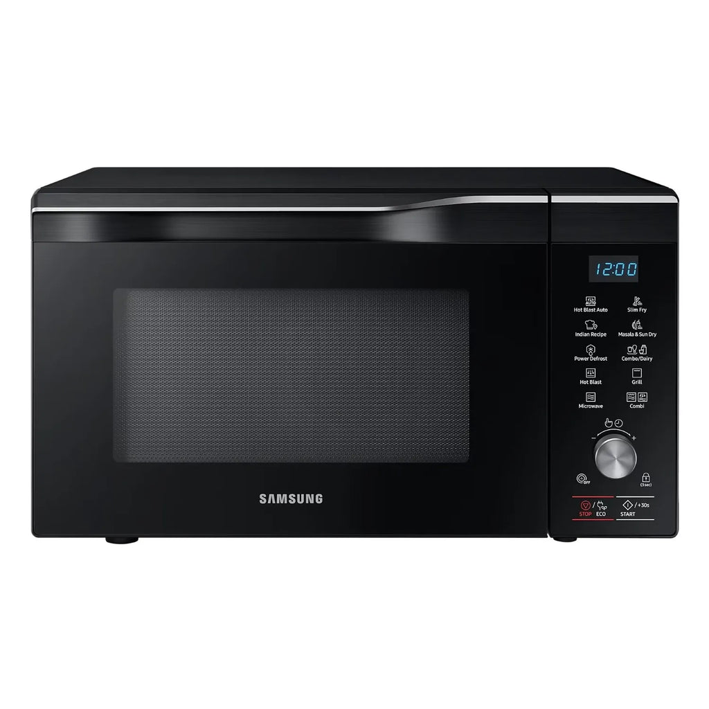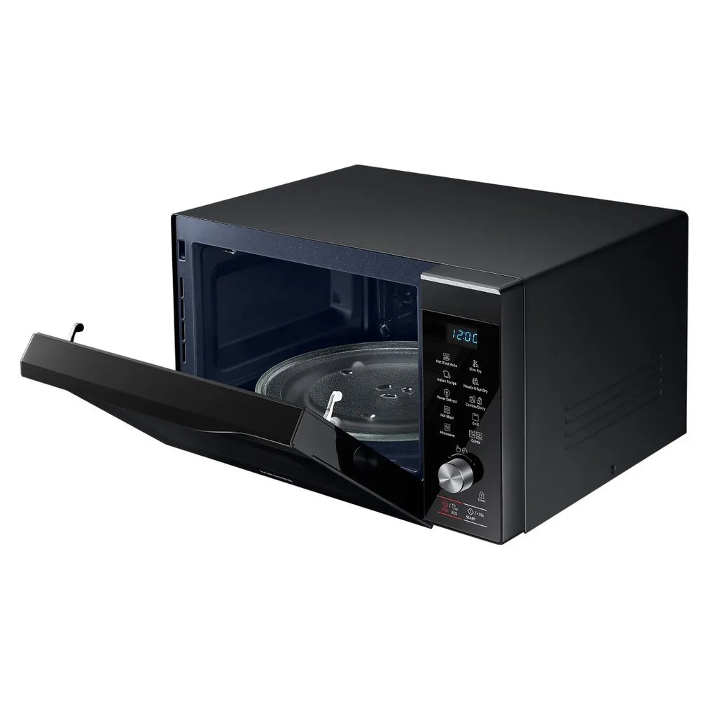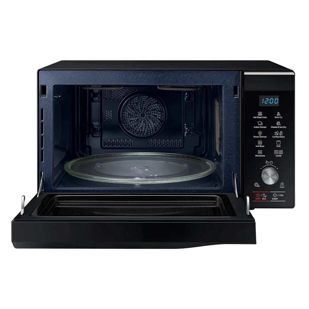 Samsung 32 L Convection Microwave Oven is designed for versatile and convenient cooking for large families. It supports convection, grill, and microwave functions, allowing baking, grilling, reheating, and cooking with ease. Features like Masala & Tadka mode and Sun Dry mode help prepare Indian recipes efficiently, while the large turntable ensures even cooking. With faster cooking performance and a sleek black finish, this microwave oven combines functionality, capacity, and modern design for everyday kitchen needs.