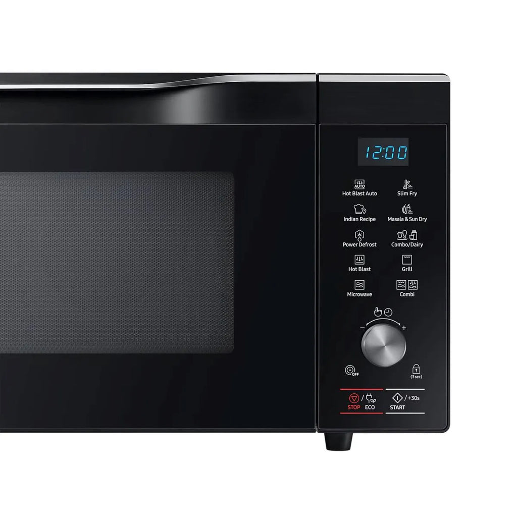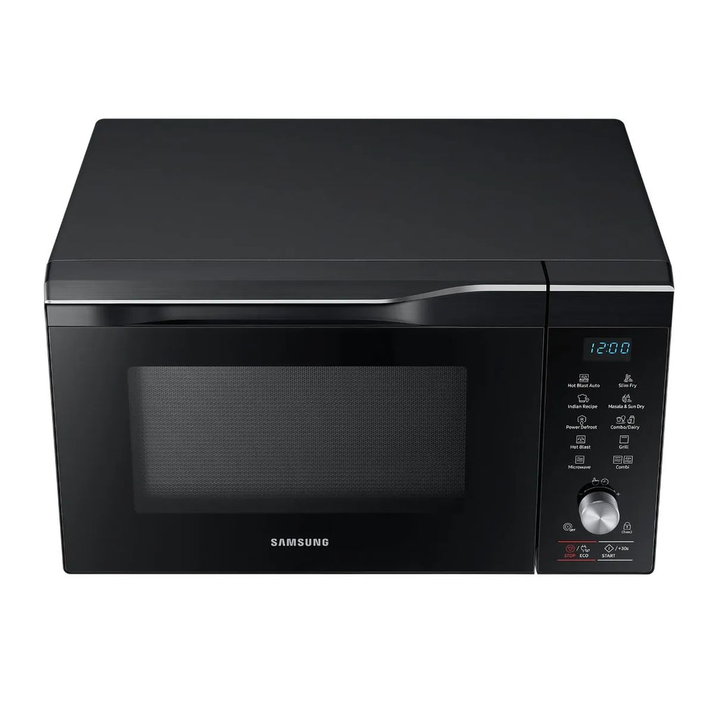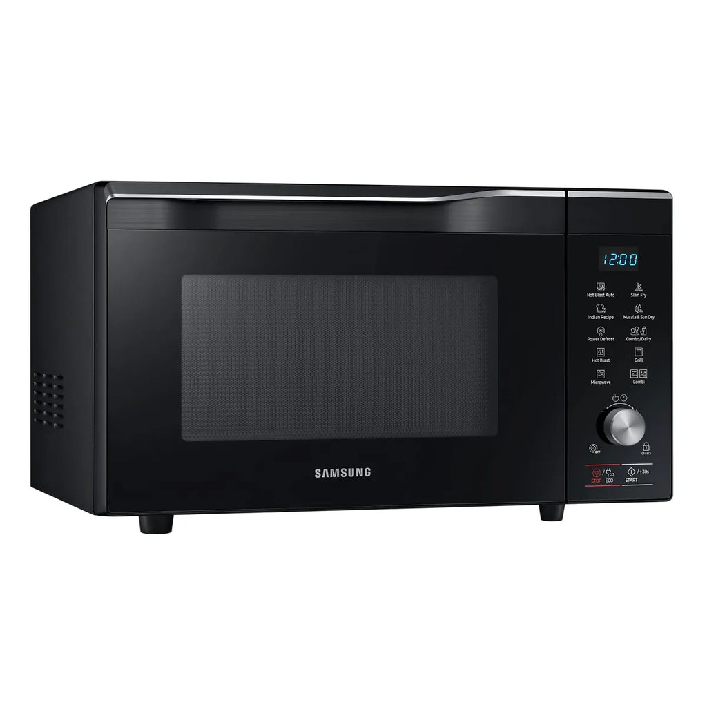 Samsung 32 L Convection Microwave Oven is designed for versatile and convenient cooking for large families. It supports convection, grill, and microwave functions, allowing baking, grilling, reheating, and cooking with ease. Features like Masala & Tadka mode and Sun Dry mode help prepare Indian recipes efficiently, while the large turntable ensures even cooking. With faster cooking performance and a sleek black finish, this microwave oven combines functionality, capacity, and modern design for everyday kitchen needs.