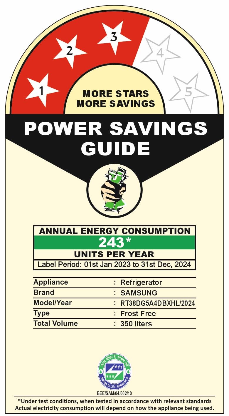 Samsung 350 L, 3 Star, Convertible 5-in-1, Digital Inverter, Frost Free Double Door, WiFi Enabled Bespoke AI Refrigerator (RT38DG5A4DBXHL, Luxe Black)