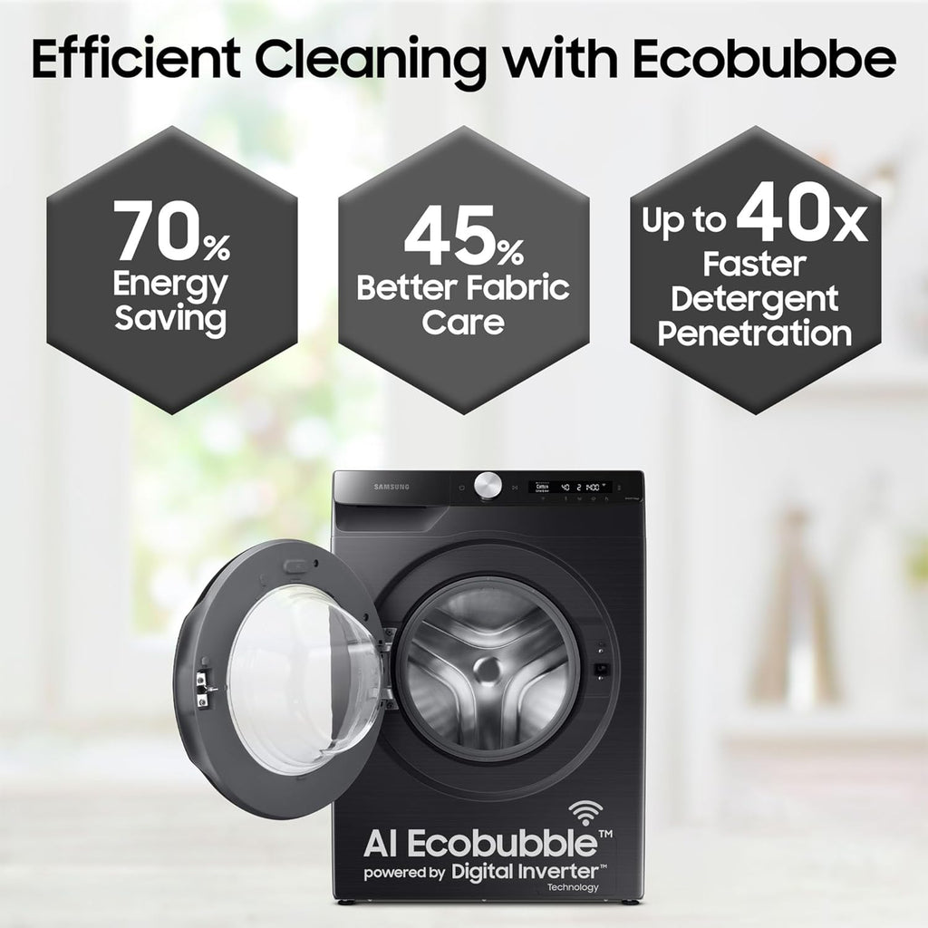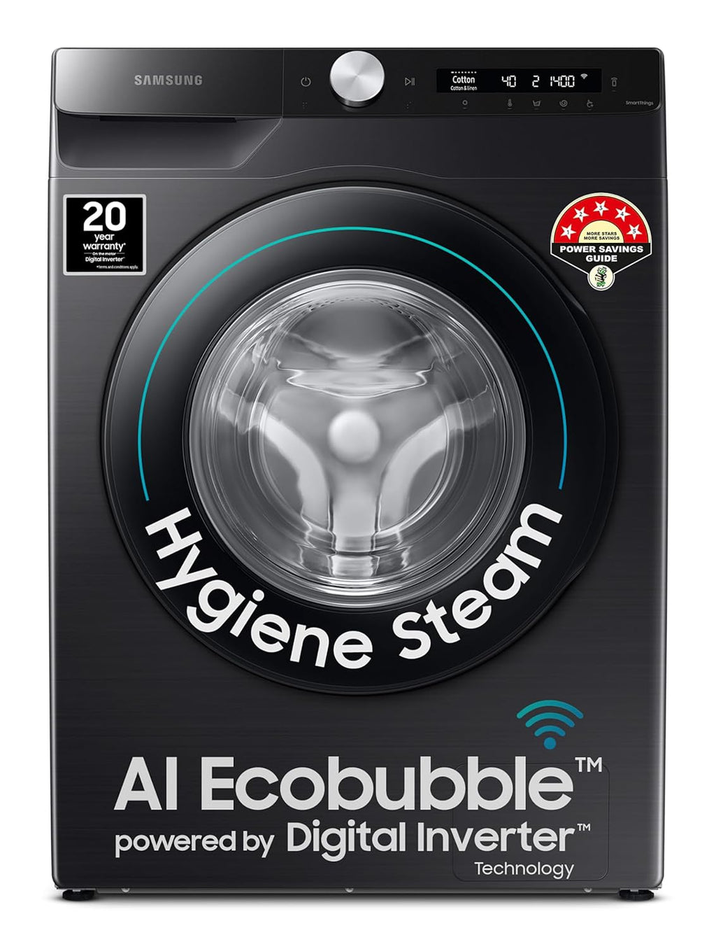 Samsung 8 kg, 5 star, Eco Bubble Technology, AI Control, Wi-Fi, Fully-Automatic Front Load Washing Machine (WW80T504DAB1TL,)