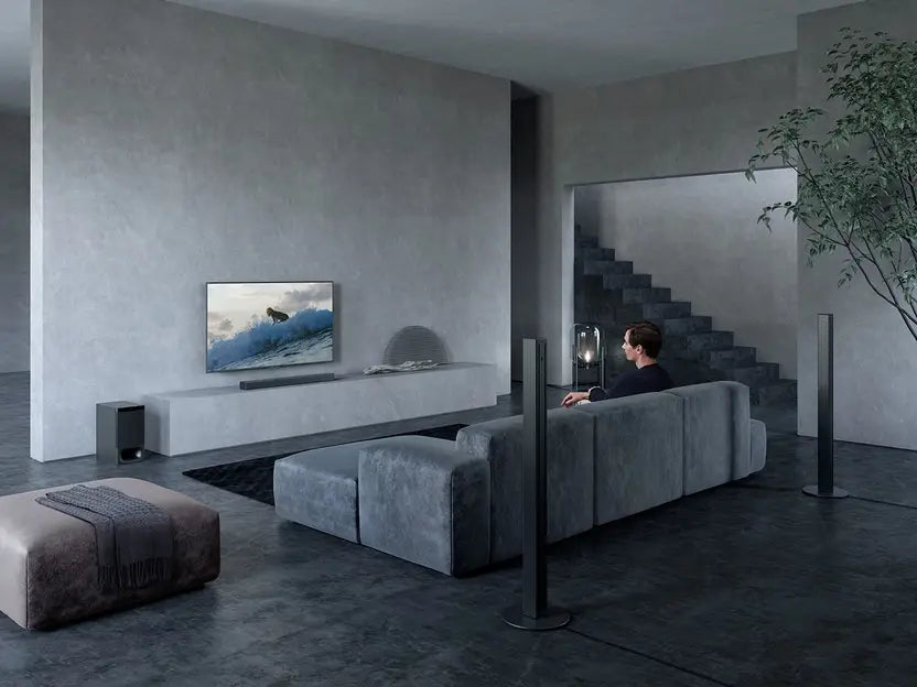 Design / Build Form Factor: Soundbar + separate tower (tall-boy) rear speakers + subwoofer