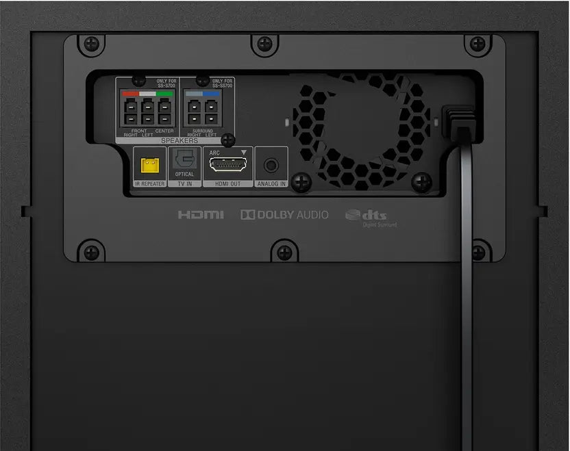 The Sony HT-RT40 (also listed as HT-S700RF) is a 5.1-channel home theatre system featuring tall-boy rear speakers and a powerful subwoofer, delivering immersive Dolby Audio sound at up to 600 W output. It supports Bluetooth, HDMI, optical input, and USB playback for flexible connectivity. Designed to transform your TV viewing into a cinematic experience, it brings rich surround sound to your living room.