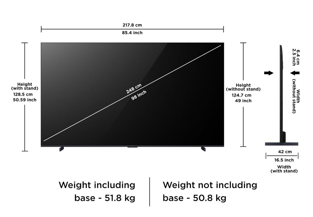 Dimensions (Without Stand) 2190 × 1245 × ~60 mm