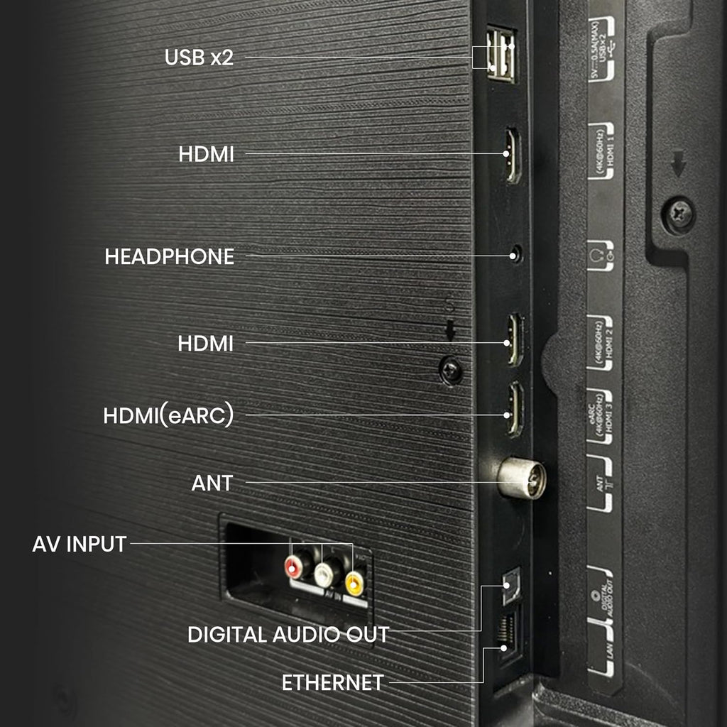 In the Box Television, Remote Control, Table Stand, User Manual, Batteries