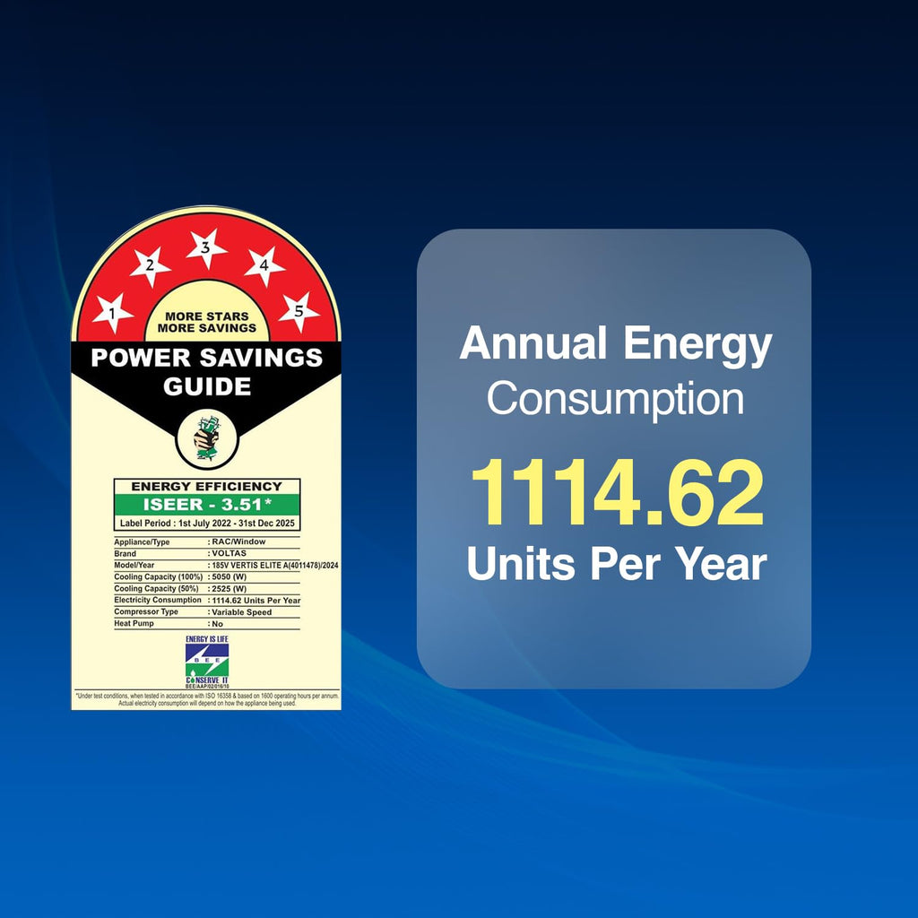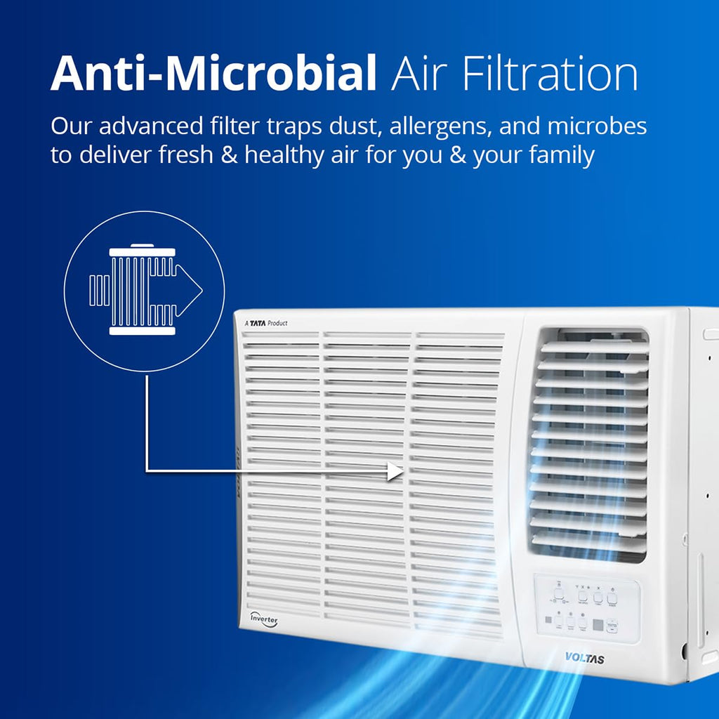 Voltas 185V Vertis Elite A 1.5 Ton 5 Star Inverter Window AC |2-in-1 Adjustable mode| Energy Efficient| Anti dust filter with Anti-Microbial coating | Copper Coil| Sleep Mode | Memory Restart| White