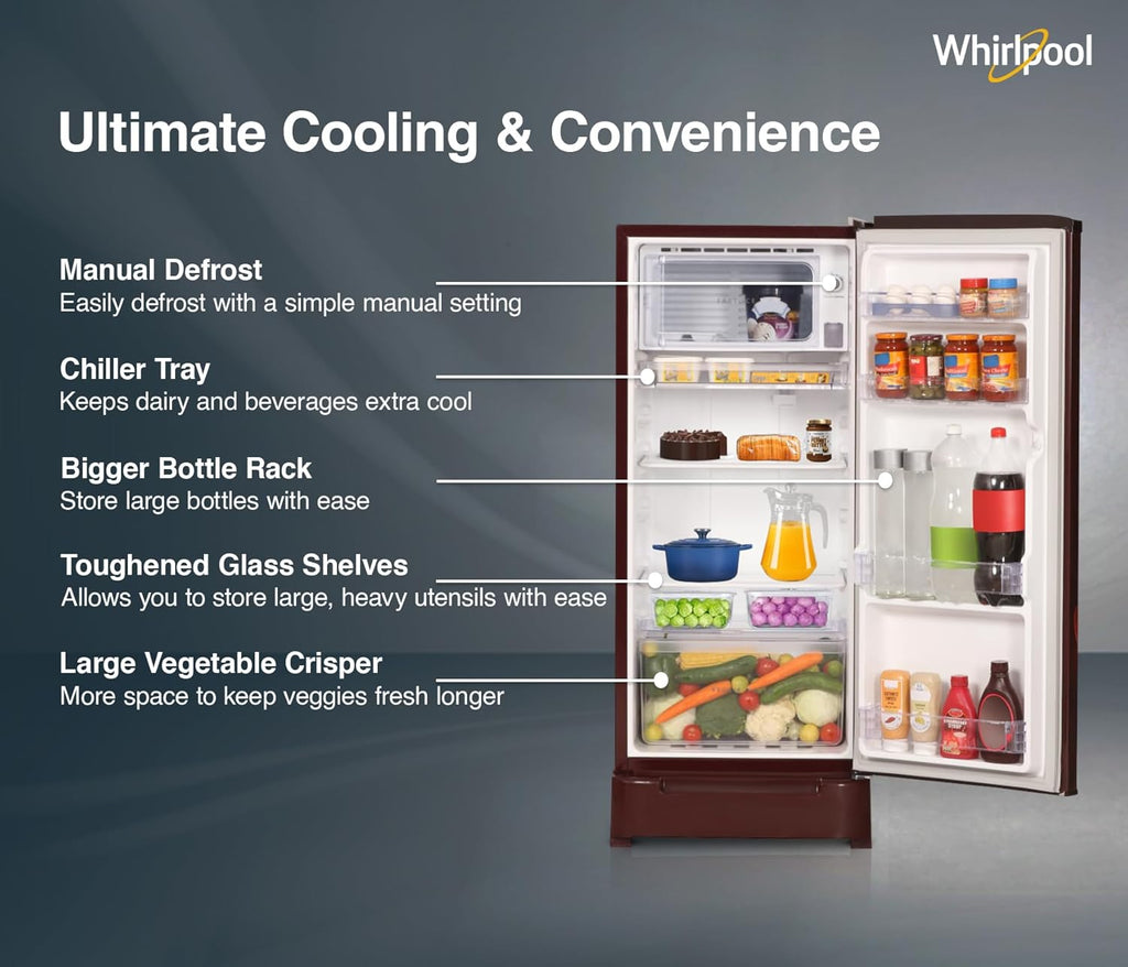 Whirlpool 184 L 5 Star Direct-Cool Single Door Refrigerator (205 WDE ROY 5S Inv SAPPHIRE SPRING-Z)