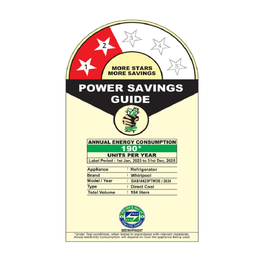 • 184 L direct‑cool, single‑door refrigerator designed for 2–3 members households