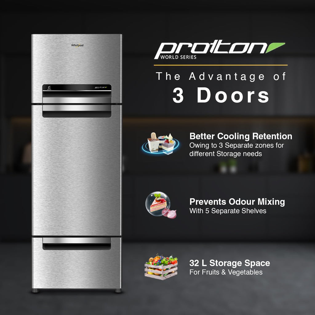 Whirlpool 270 L(313D) Frost Free Triple-Door 5 Star Refrigerator(Fp 313D Protton Roy Alpha Steel(Z), Double Door Refrigerator Space)