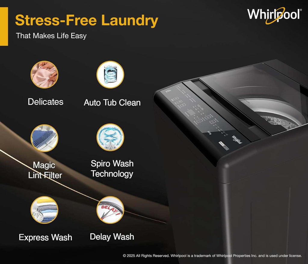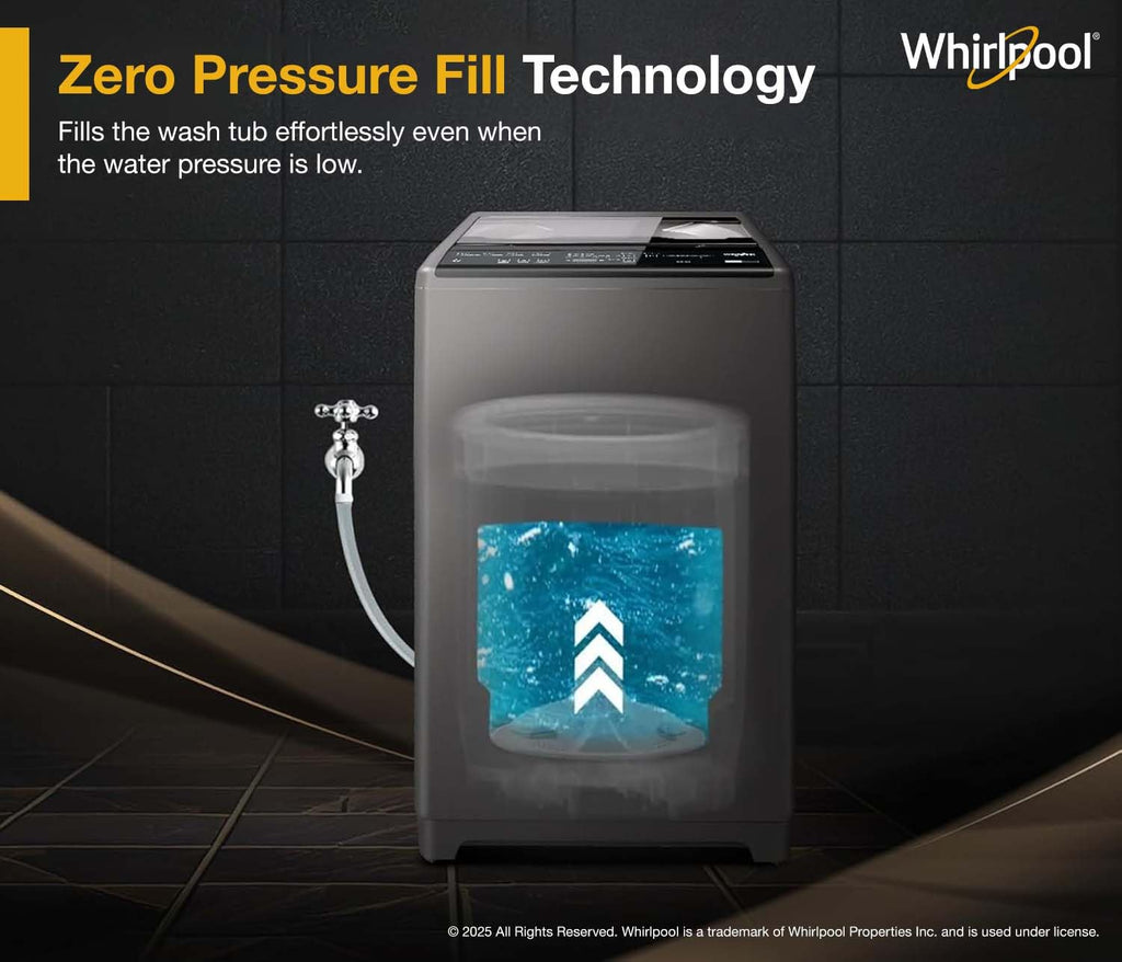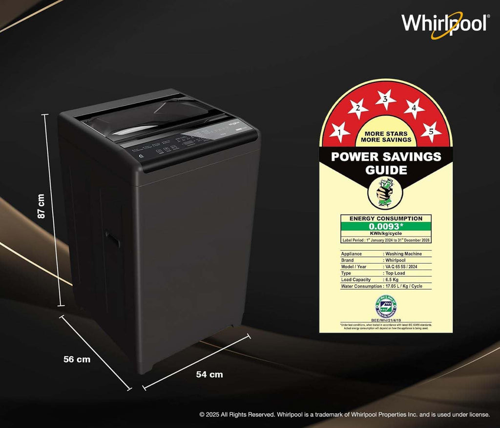 The Whirlpool 6.5 kg Magic Clean 5-Star Fully Automatic Top Load Washing Machine in grey (MAGIC CLEAN 6.5 GENX GREY 5YrMW) offers efficient washing for smaller households, with a 5-star energy rating, multiple wash programs, and a stainless steel tub. Designed for ease of use and optimal performance even in low water conditions, it delivers reliable cleaning with features like zero-pressure fill and self-cleaning tub.
